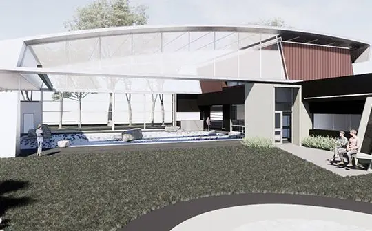 Image: A render of the QUT lunar testbed within the proposed space facility at Kelvin Grove campus. QUT/RAL Architects.