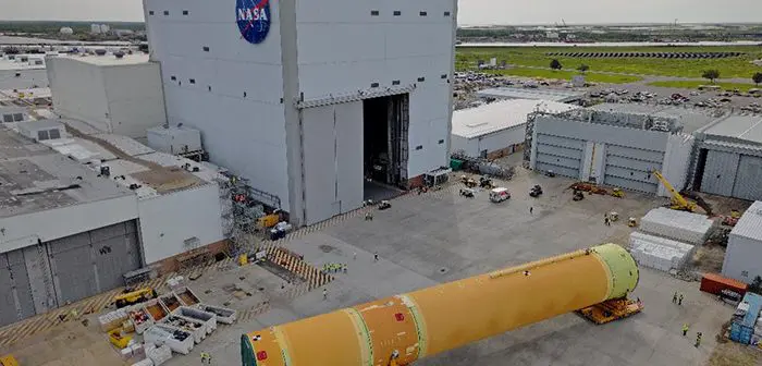 Engineers used specialised transporters to move the top four-fifths of the core stage—containing the liquid hydrogen tank, liquid oxygen tank, intertank and forward skirt—from inside Michoud to the Pegasus barge. After it arrives at Kennedy, teams will complete outfitting and vertical integration, and NASA’s Exploration Ground Systems Program will stack the rocket’s components ahead of launch.