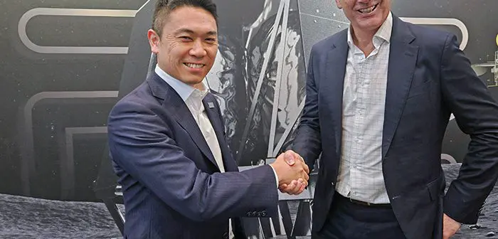 Image Supplied: (L-R) ispace Director & CFO Jumpei Nozaki and entX Limited Managing Director Bryn Jones